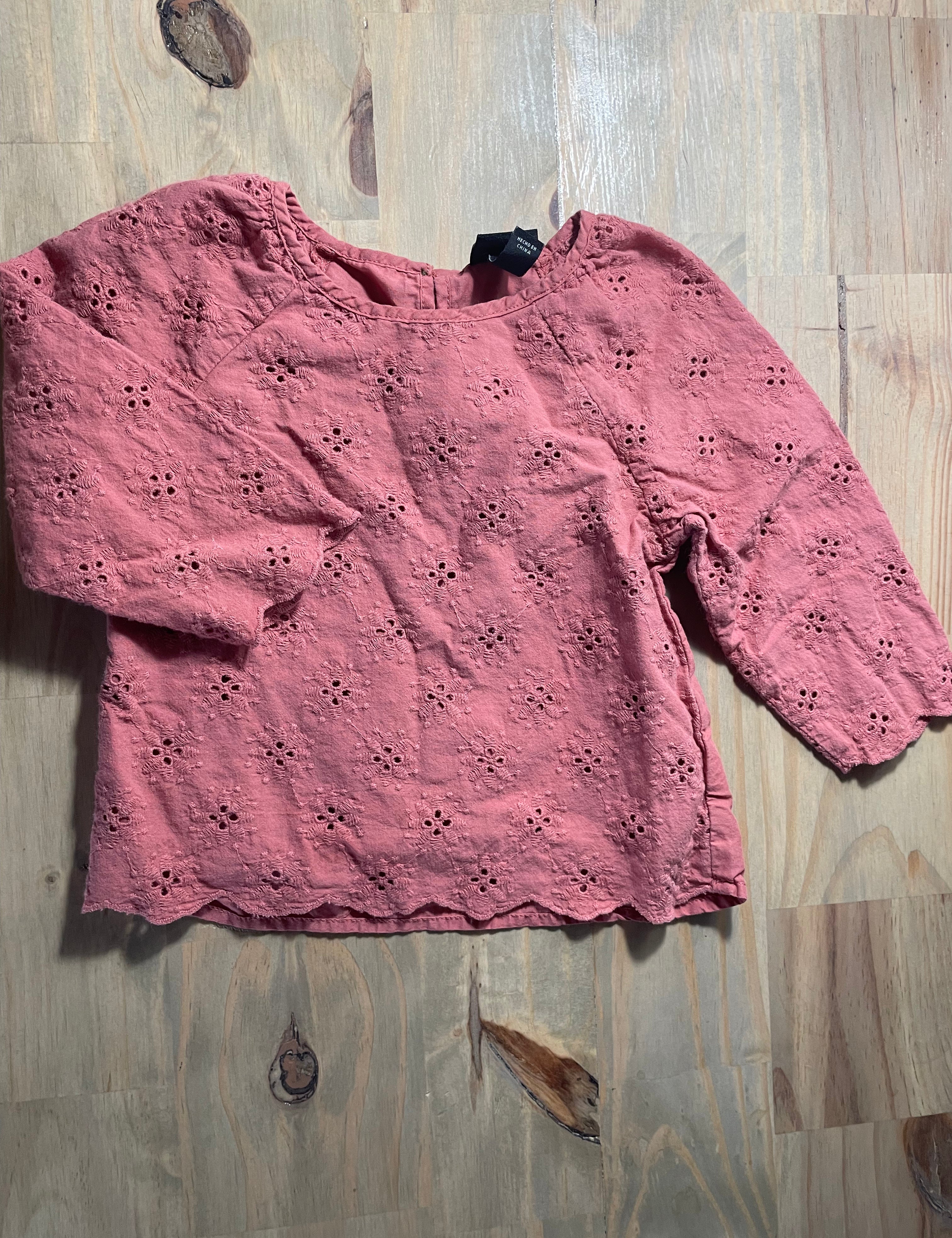 Pink Eyelet Long Sleeve Top | 12-18 mo