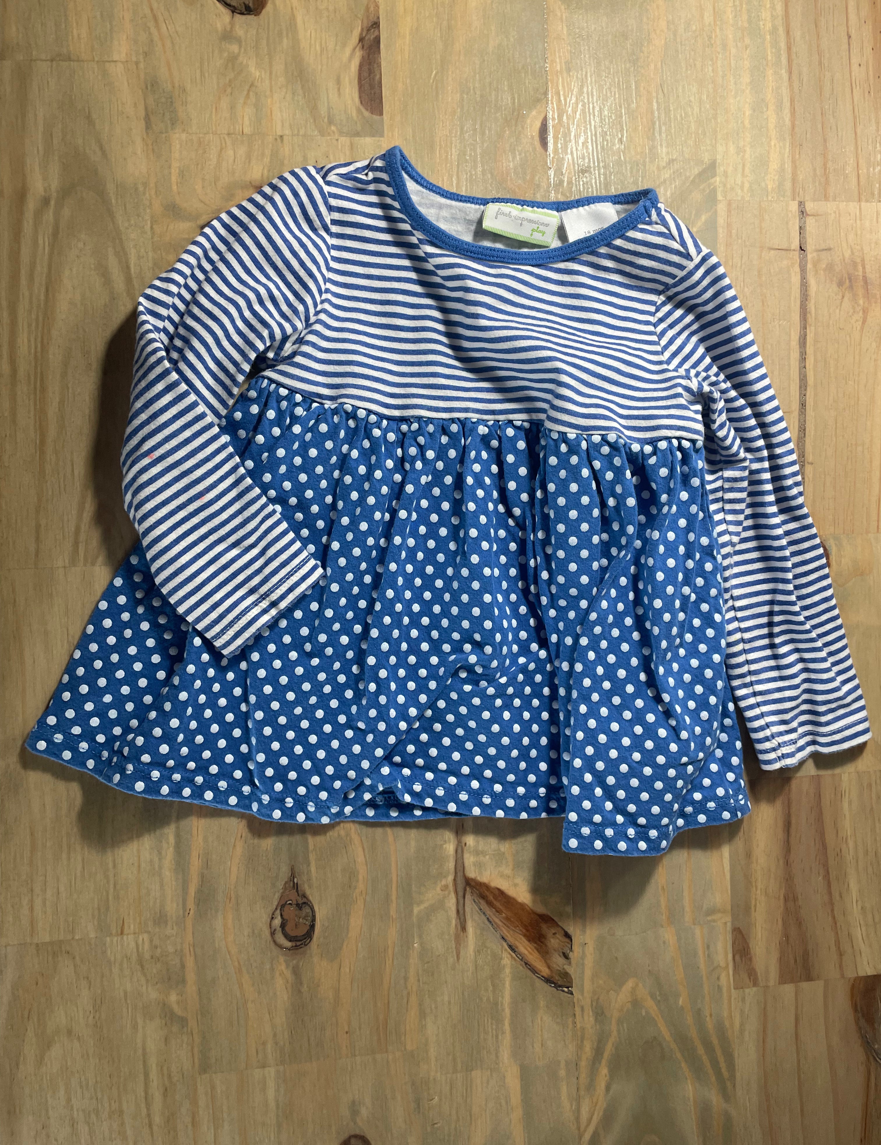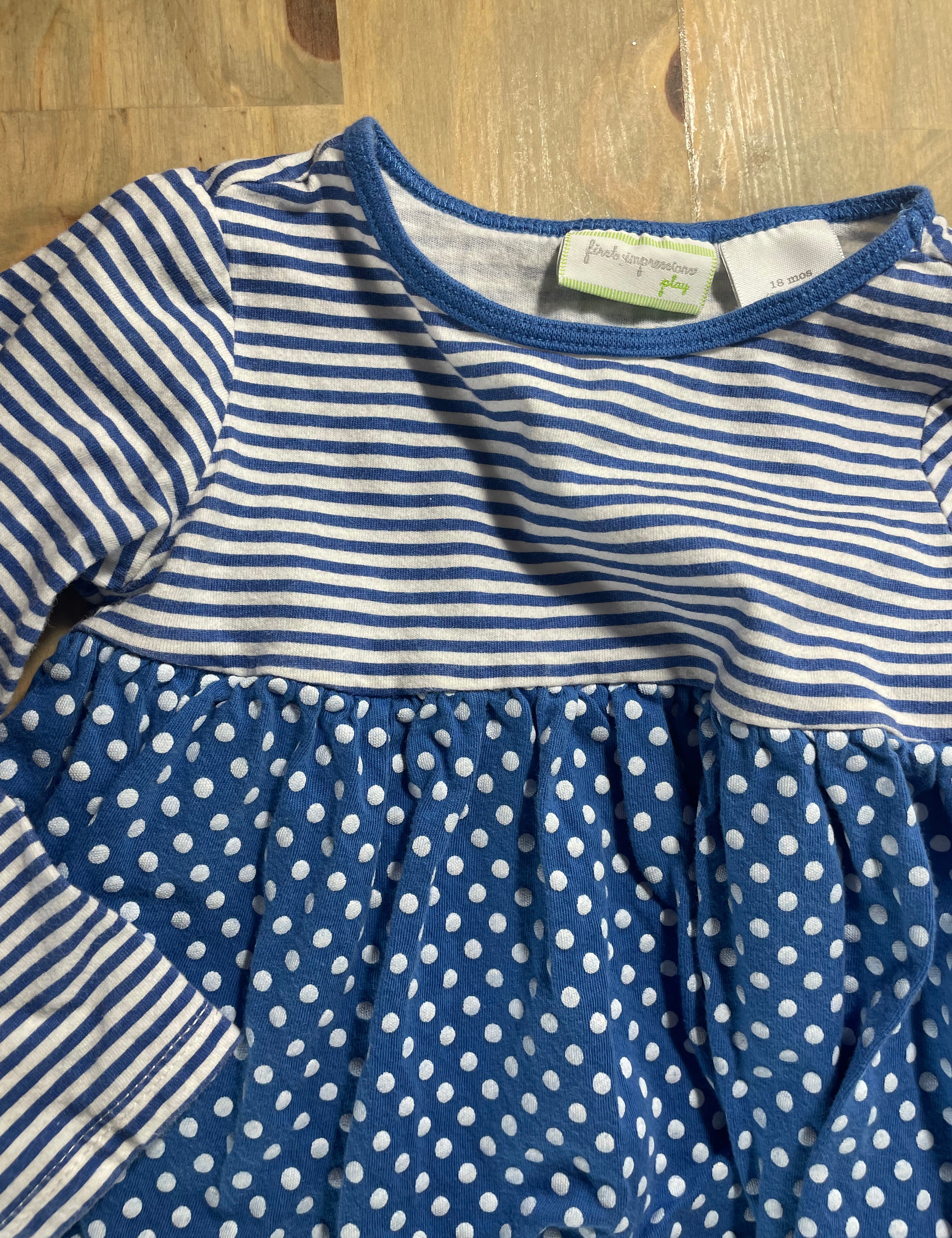 Blue Polkadot Dress | 12-18 mo | First Impressions