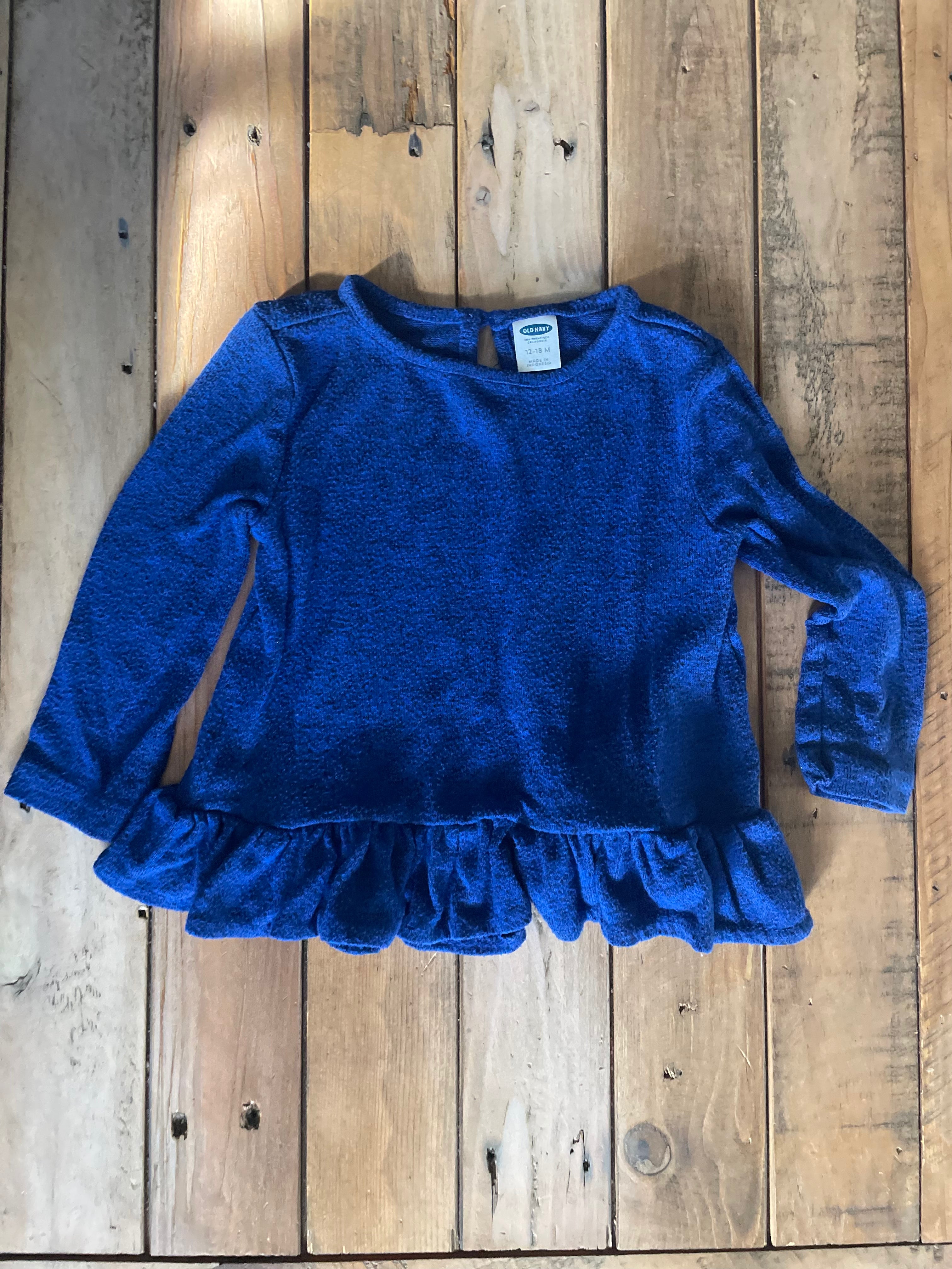 Blue Velvet Ruffle Long Sleeve | 12-18 mo | Old Navy