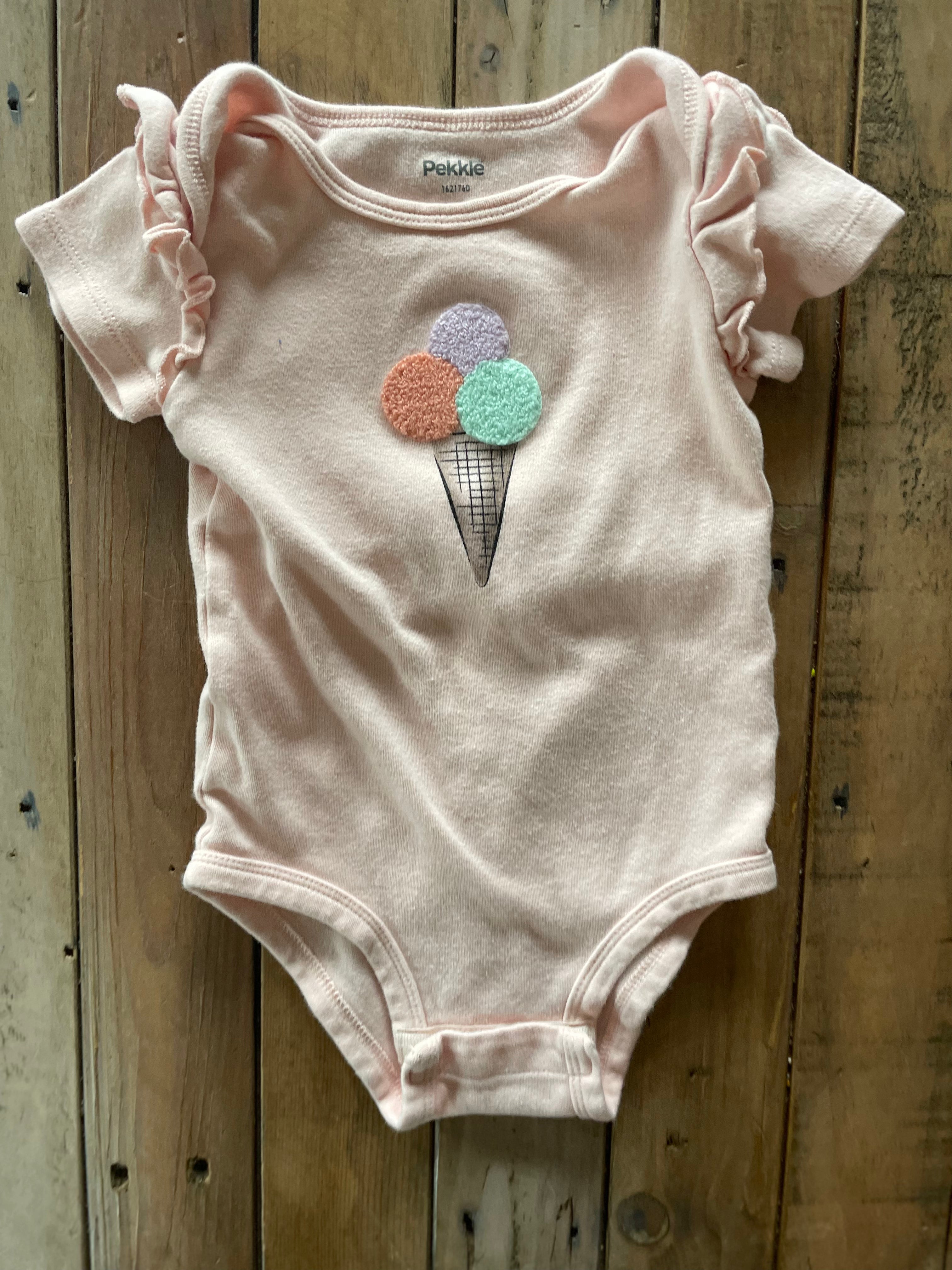 Pink Ruffled Ice Cream Onesie | 12-18 mo | Pekkle