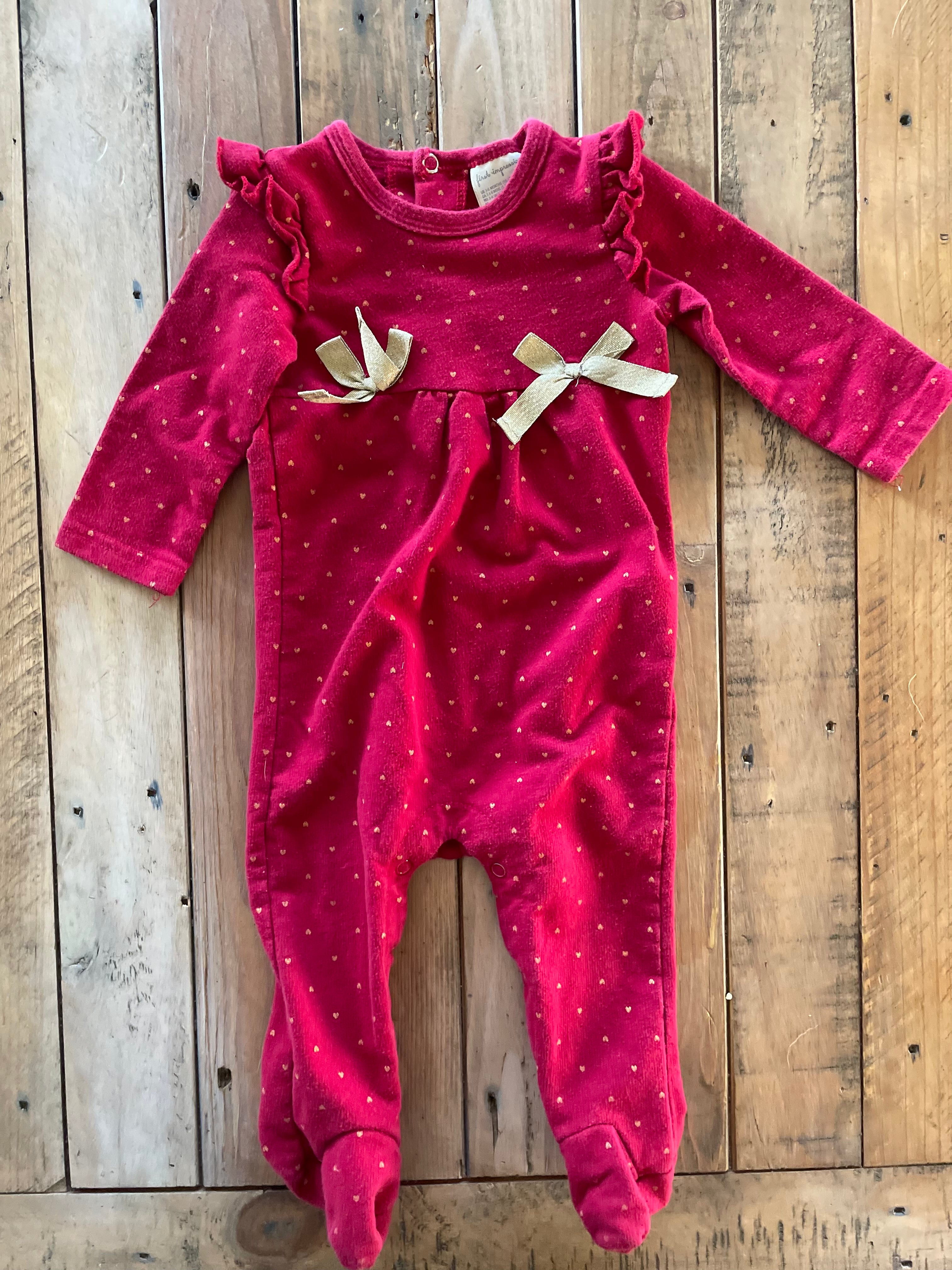 Red Ruffled Polkadot Button Up Pajama | 3-6 mo | First Impressions