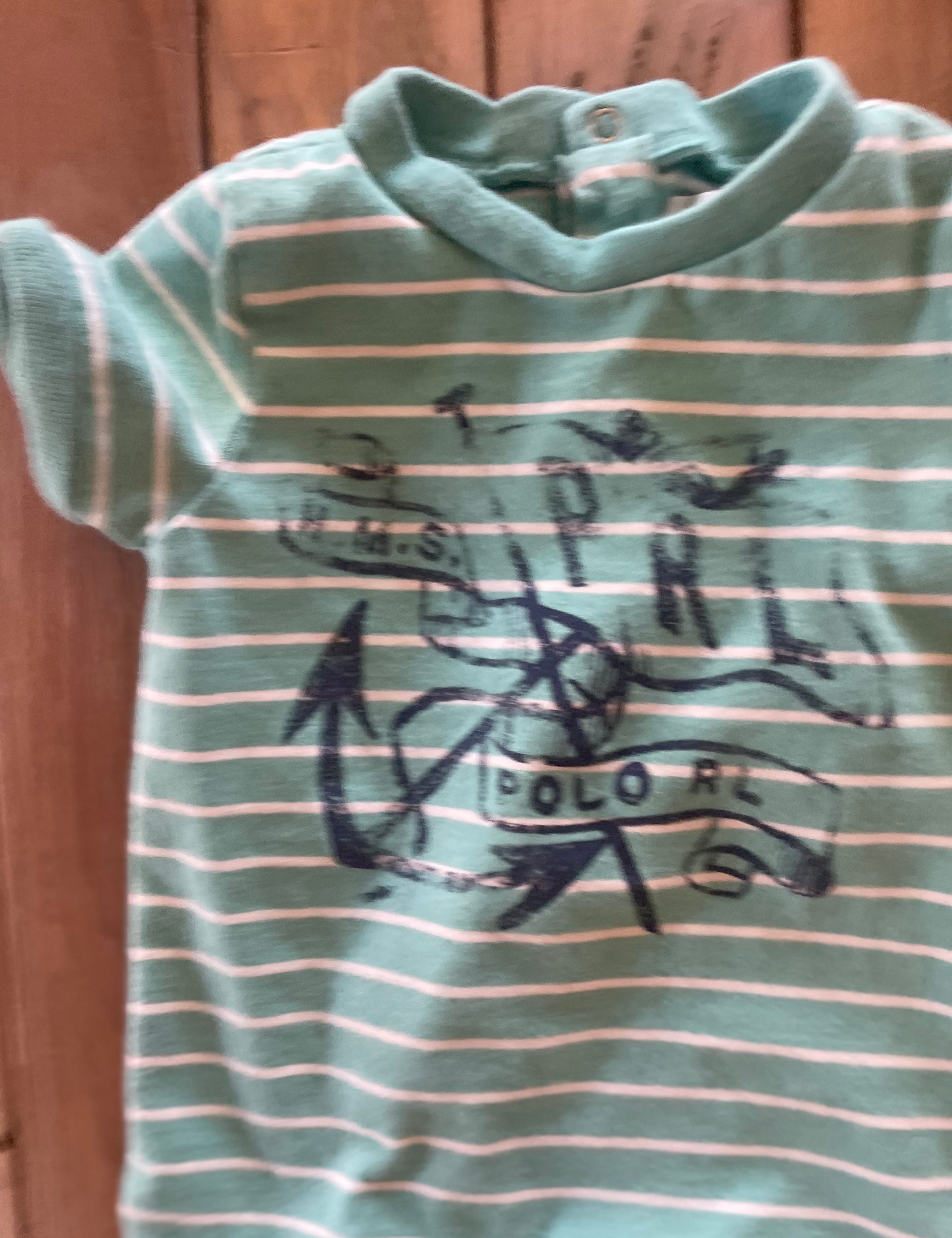 Green & White Stripe Romper | 3-6 mo | Ralph Lauren