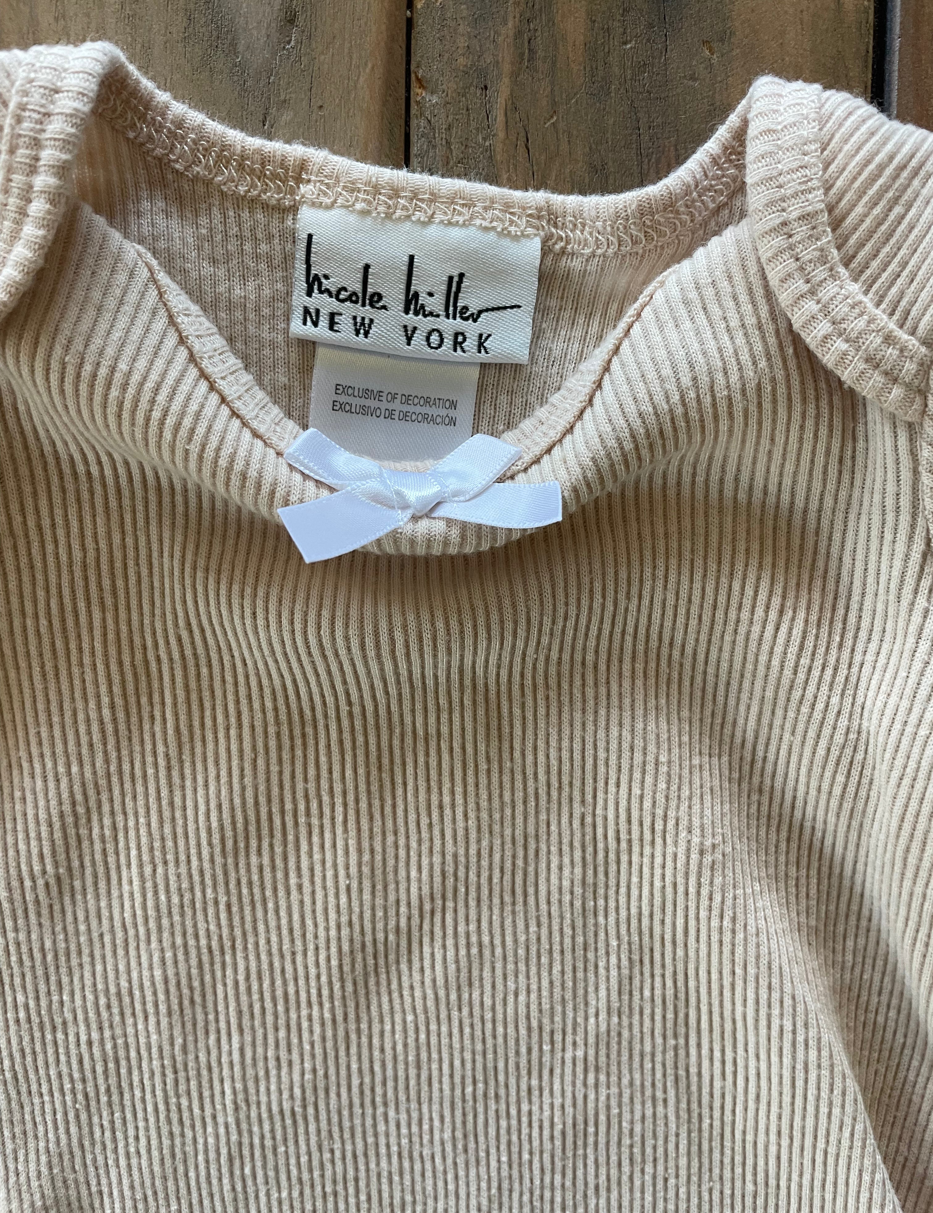 Beige Ribbed Short Sleeve Onesie | Nicole Miller
