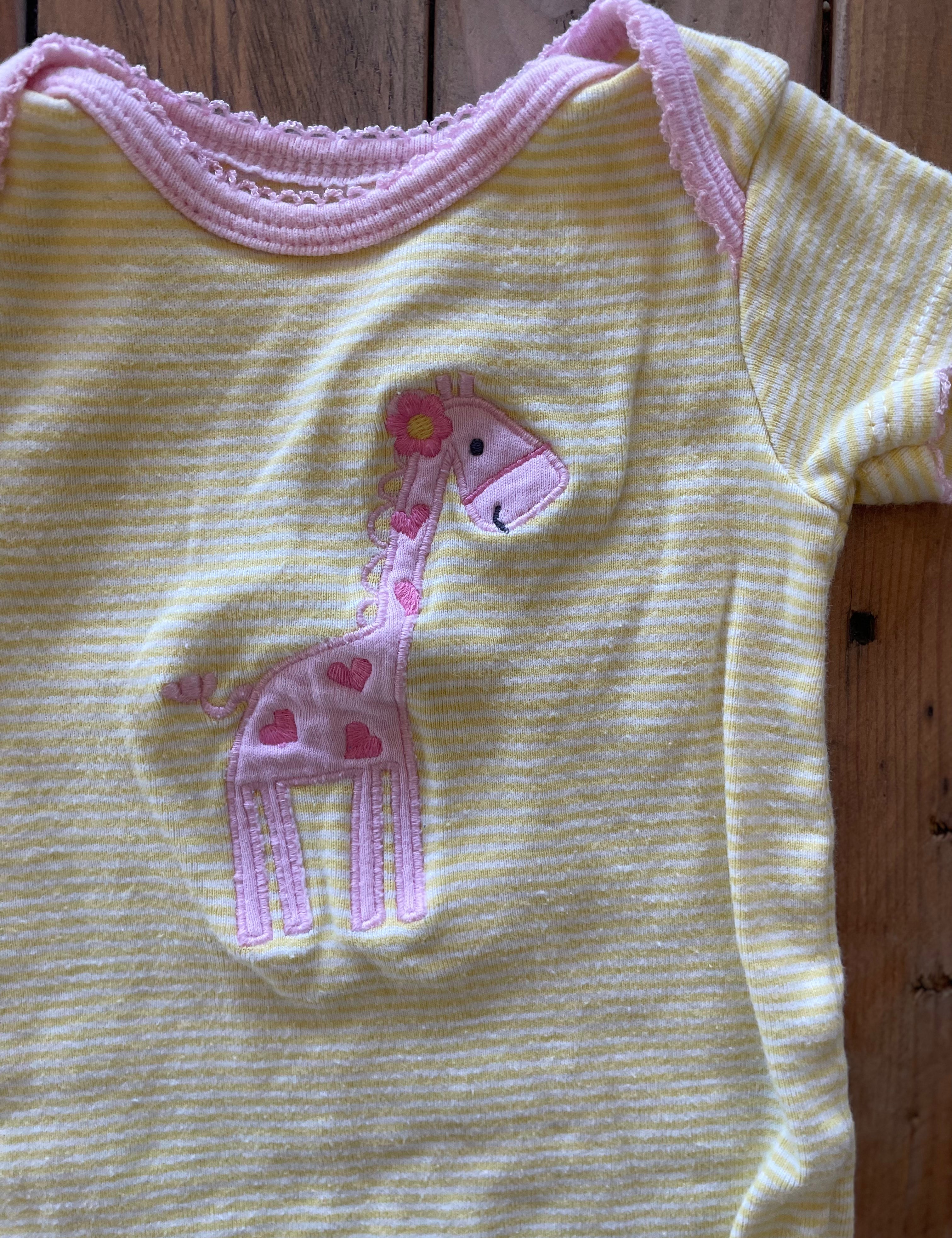 Yellow and Pink Giraffe Onesie | 0-3 mo