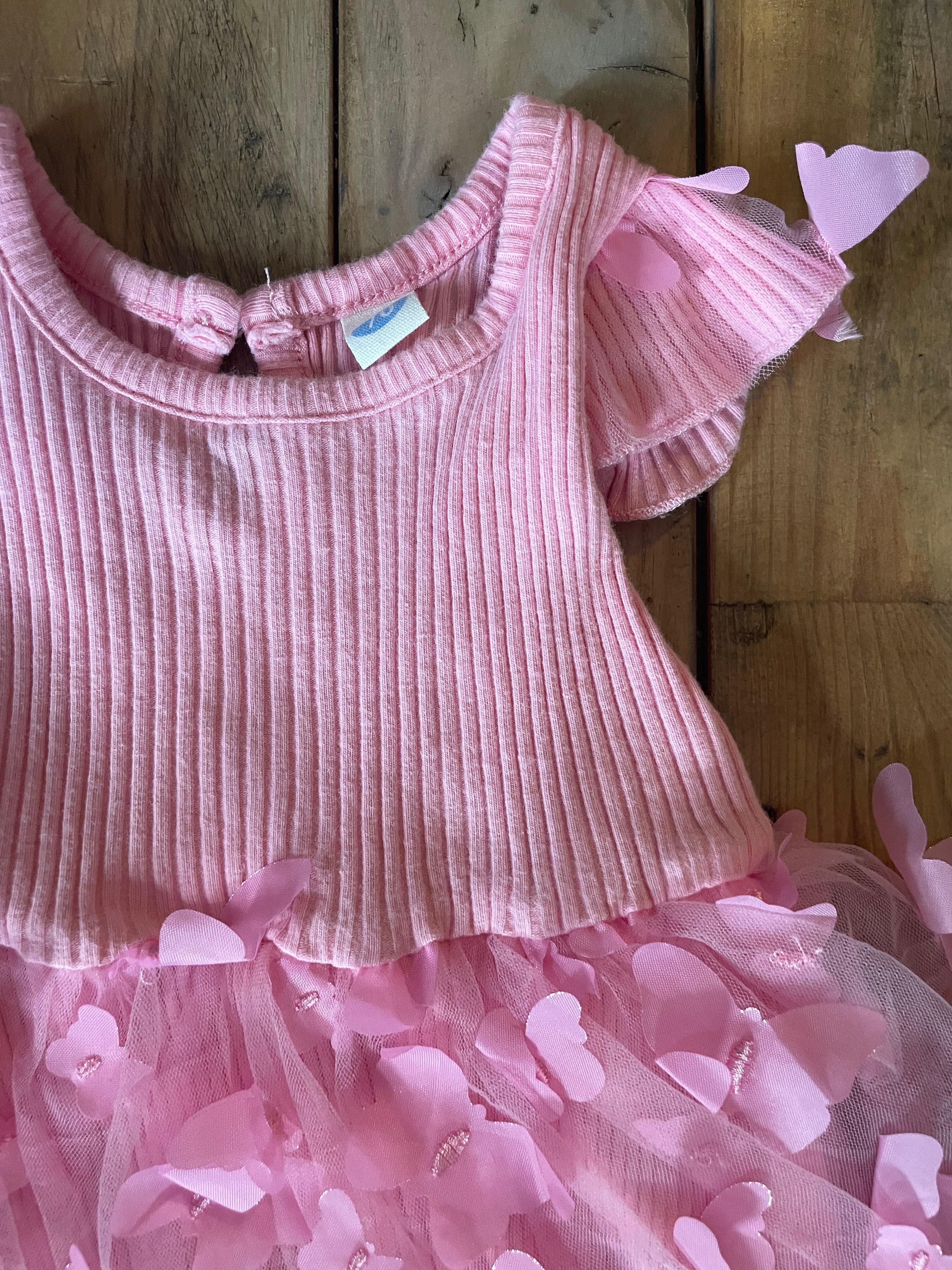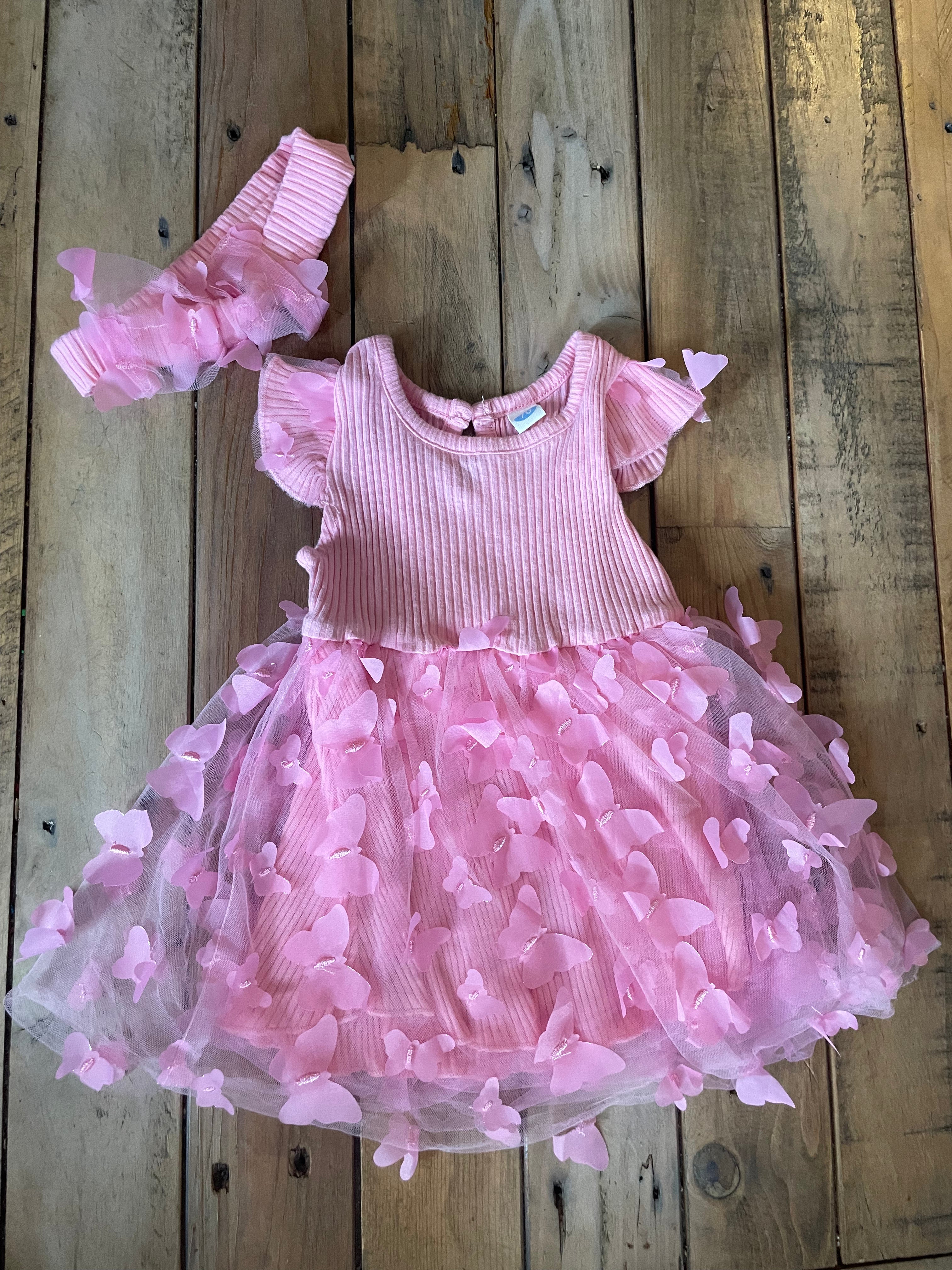 Pink Tulle Ruffle Dress with Headband | 3-6 mo