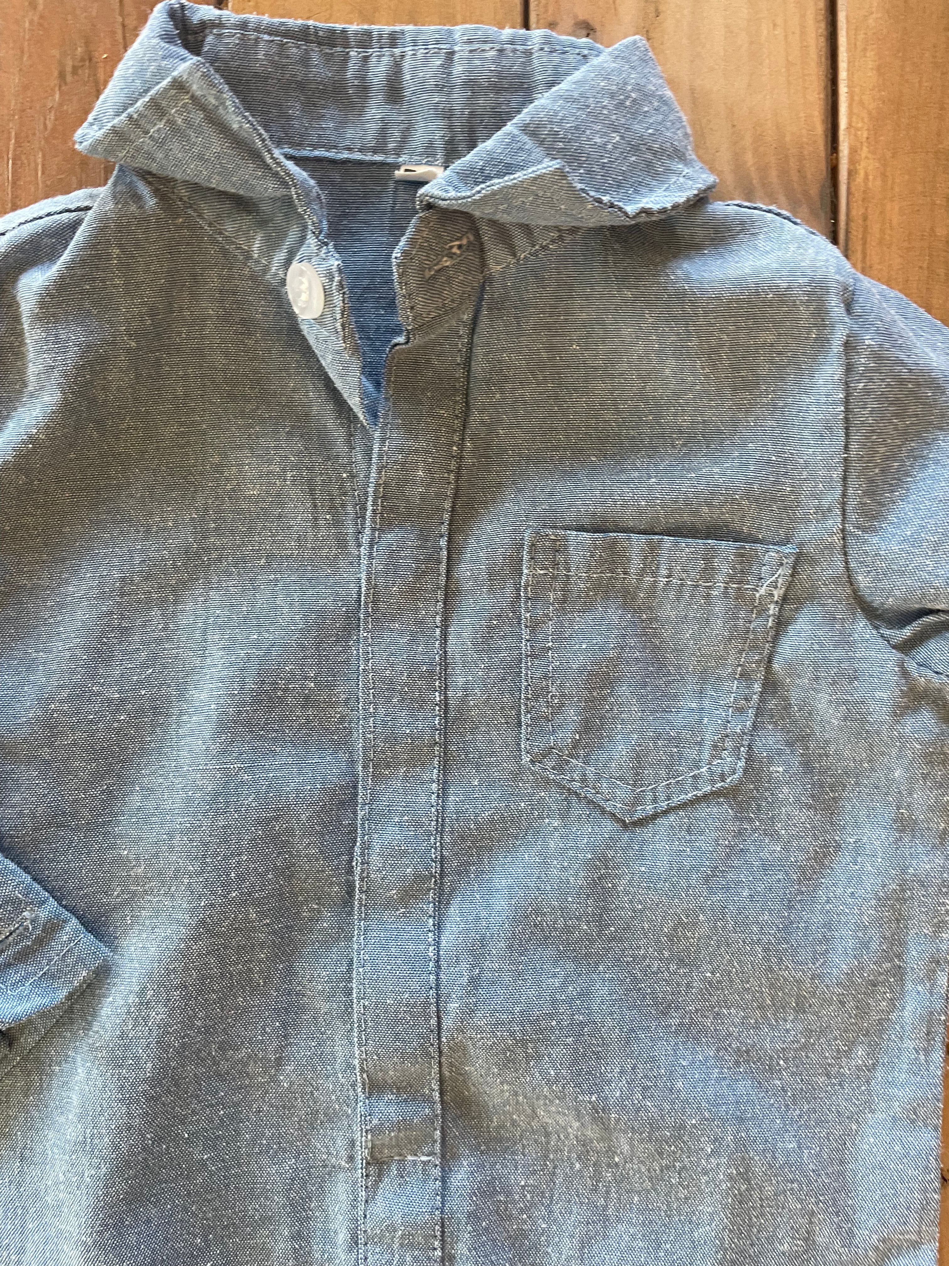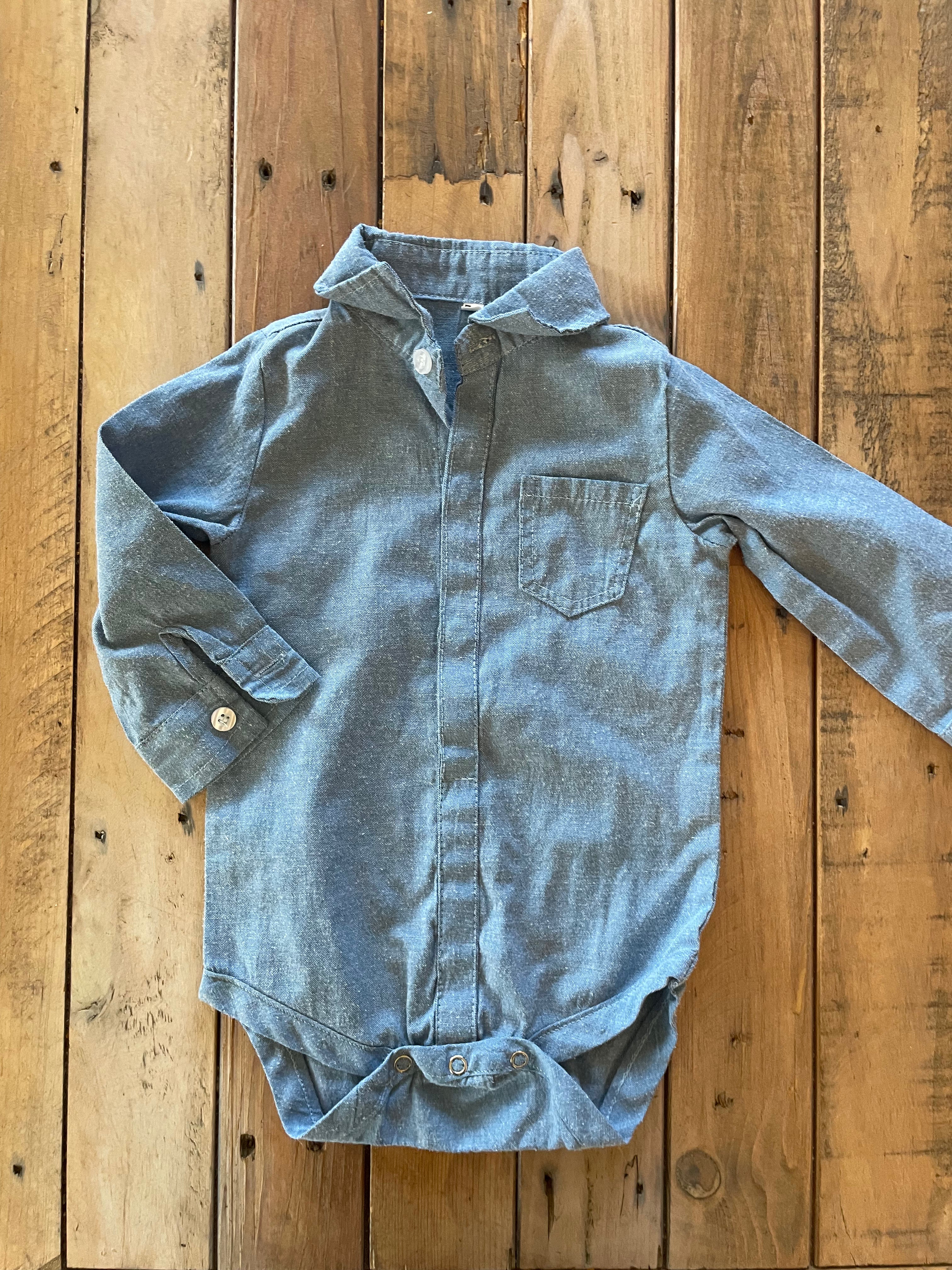Blue Button Up Long Sleeve Onesie