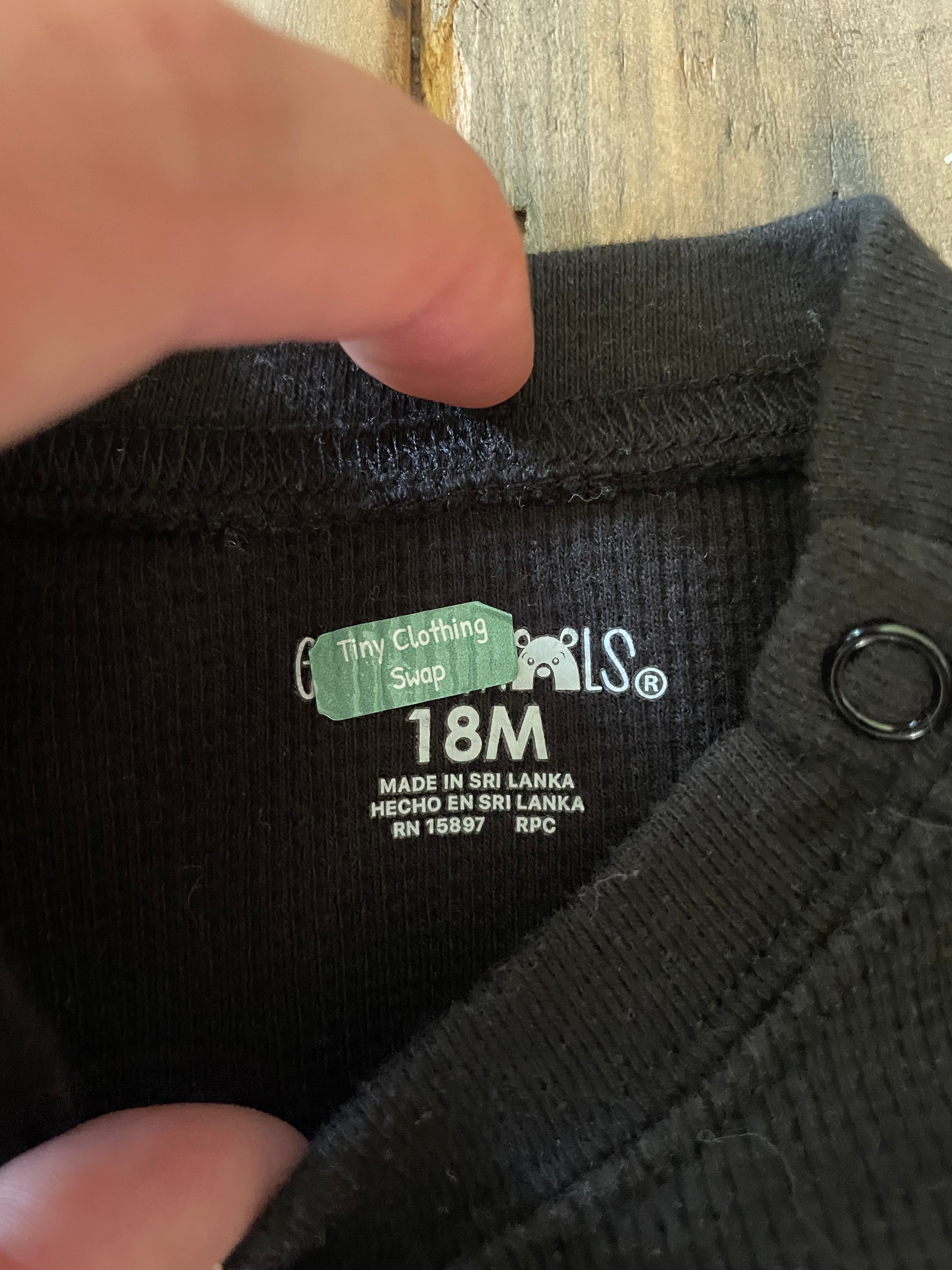 Black Thermal Long Sleeve Onesie | 12-18 mo | Garanimals