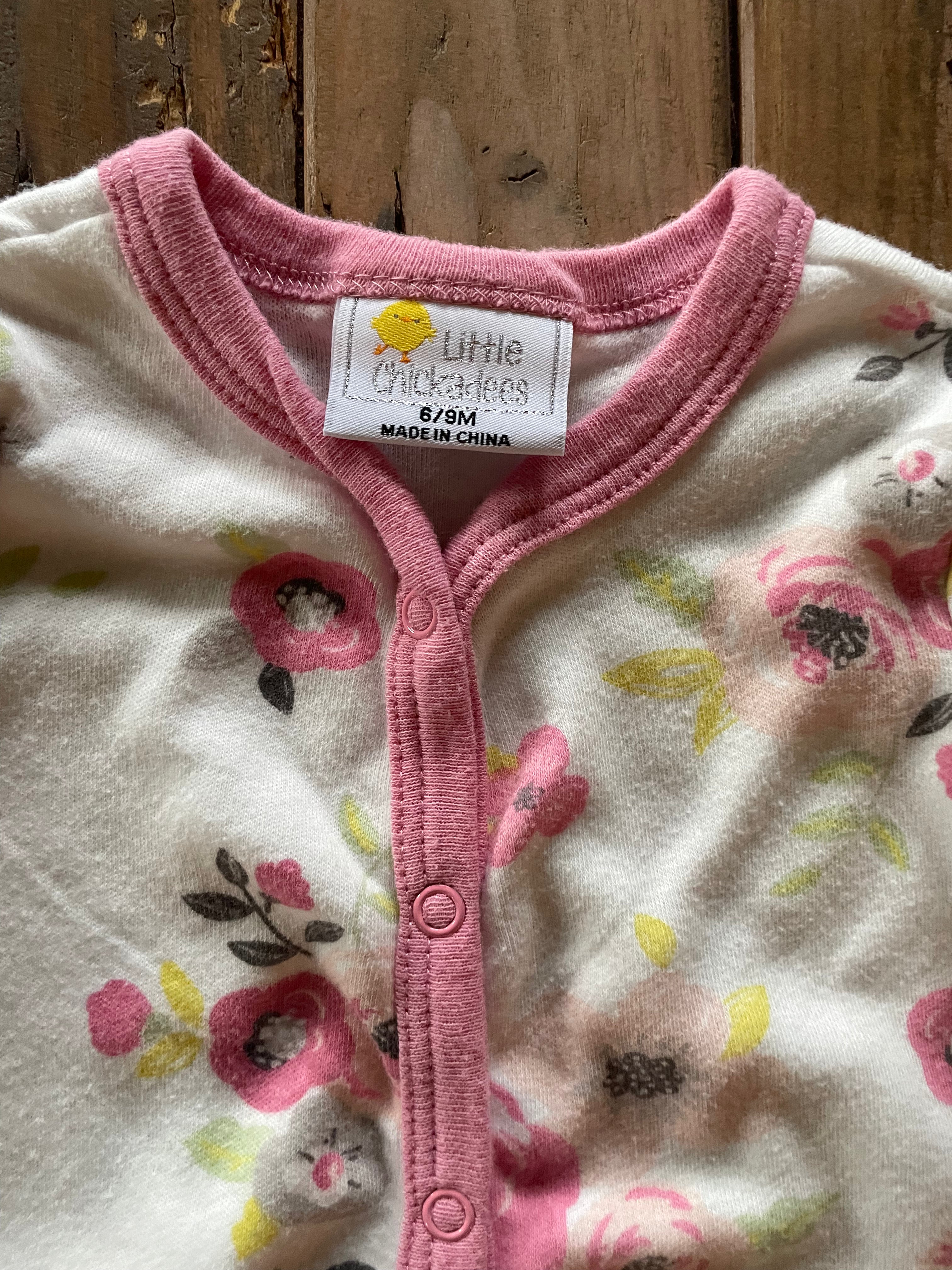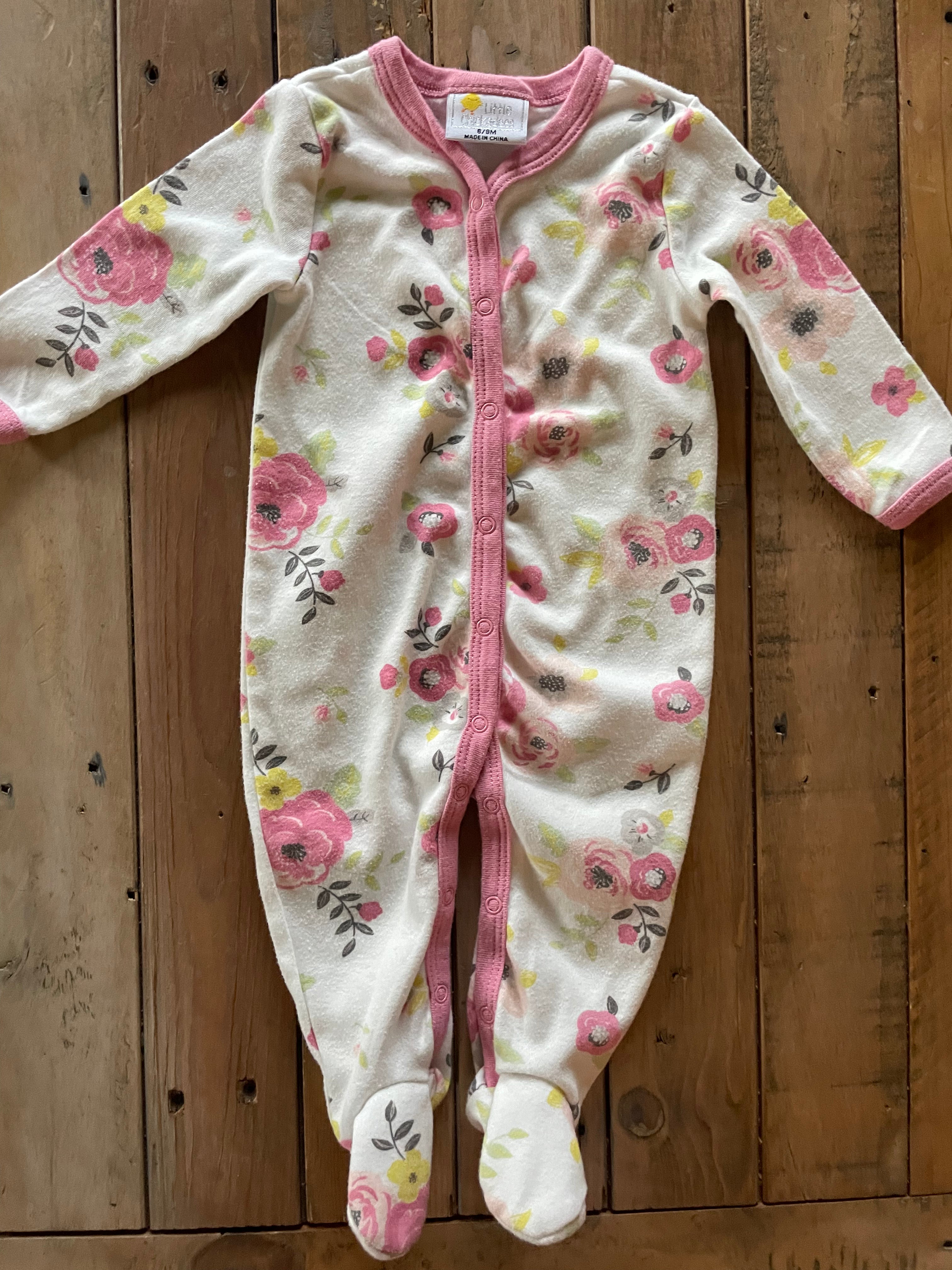 Pink Roses Button Up Pajama | 6-9 mo | Little Chickadees