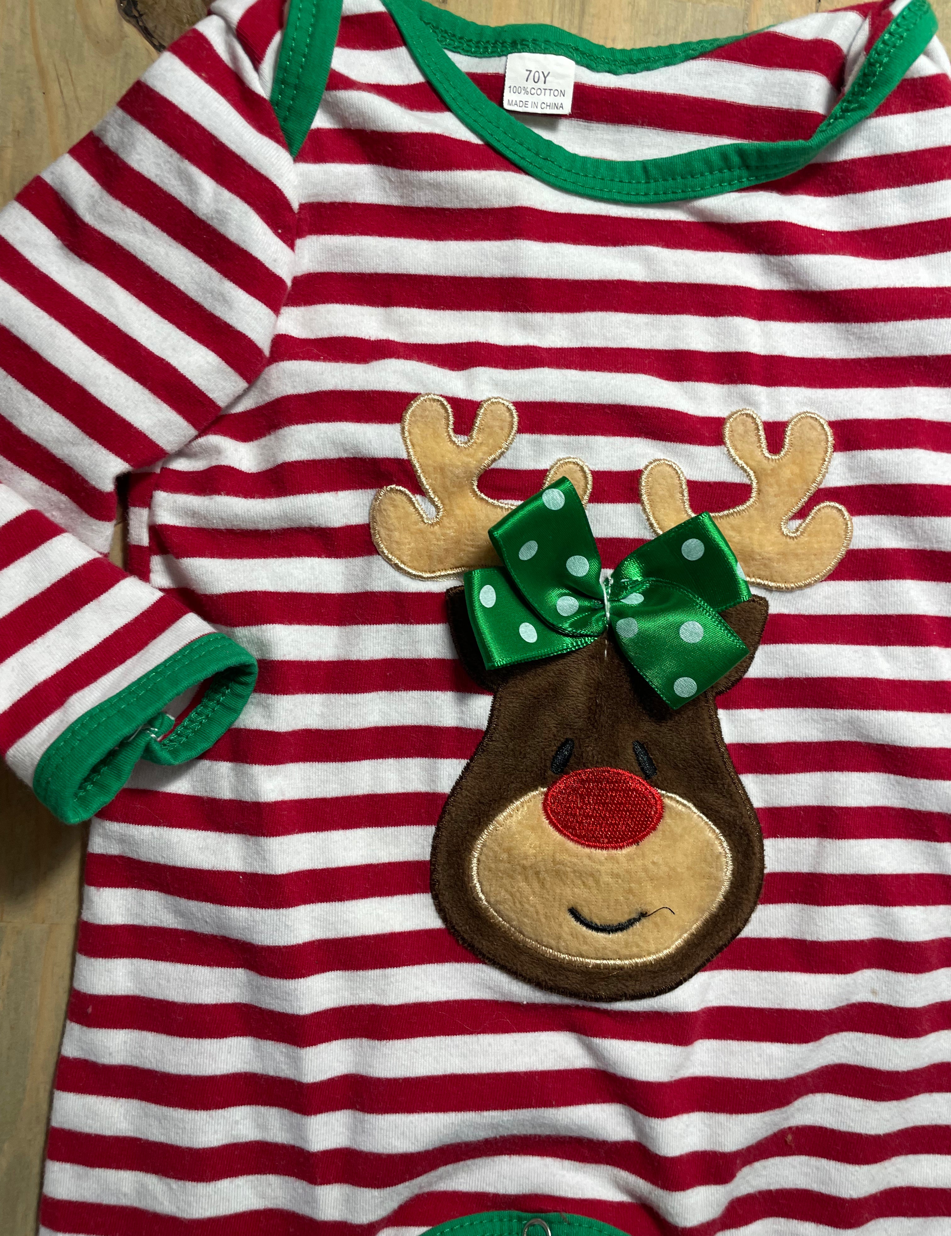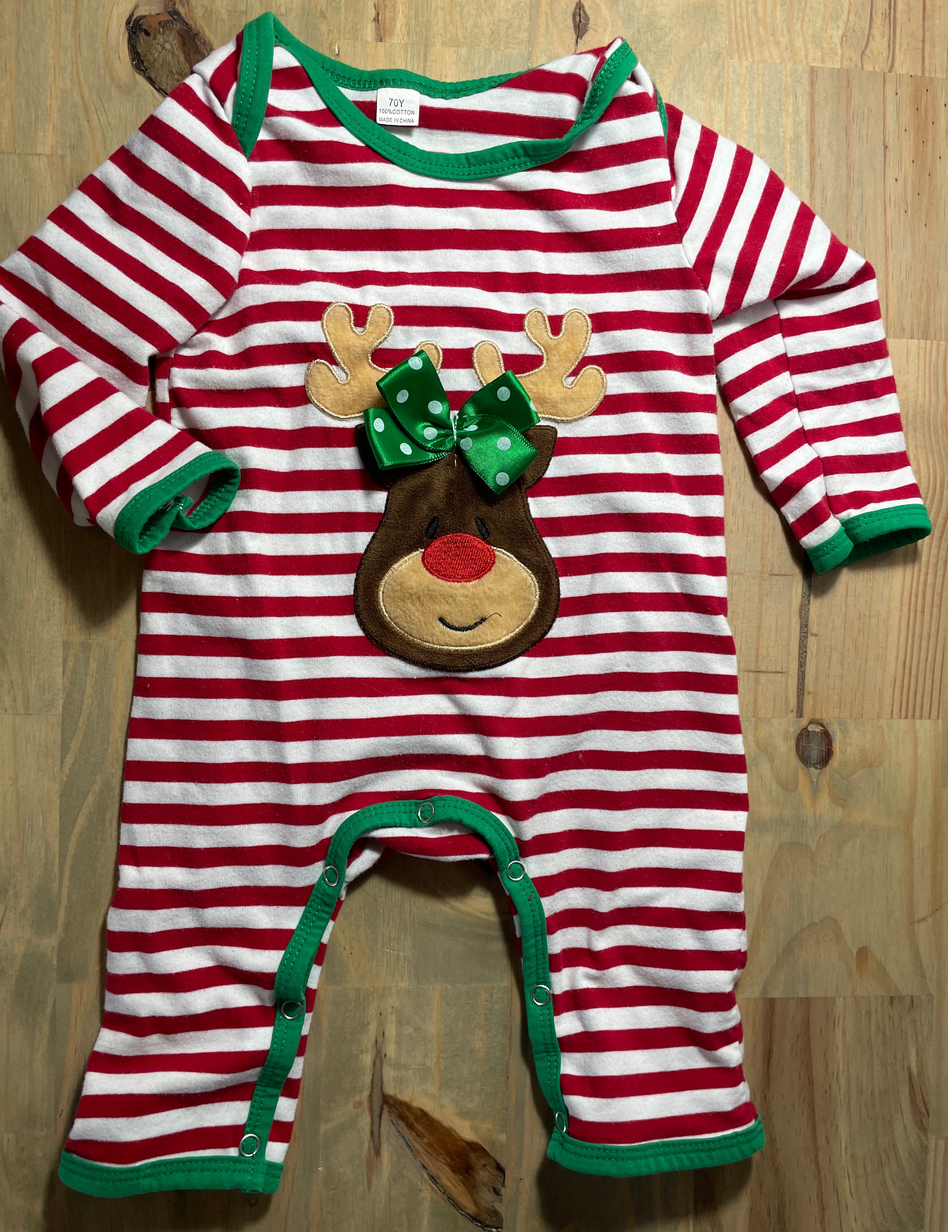 Reindeer Stripe Romper | 6-9 mo
