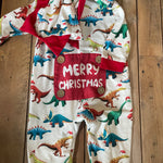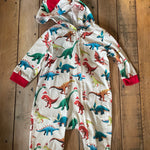 Christmas Dino Zip Up Romper with Hoodie | 3-6 mo