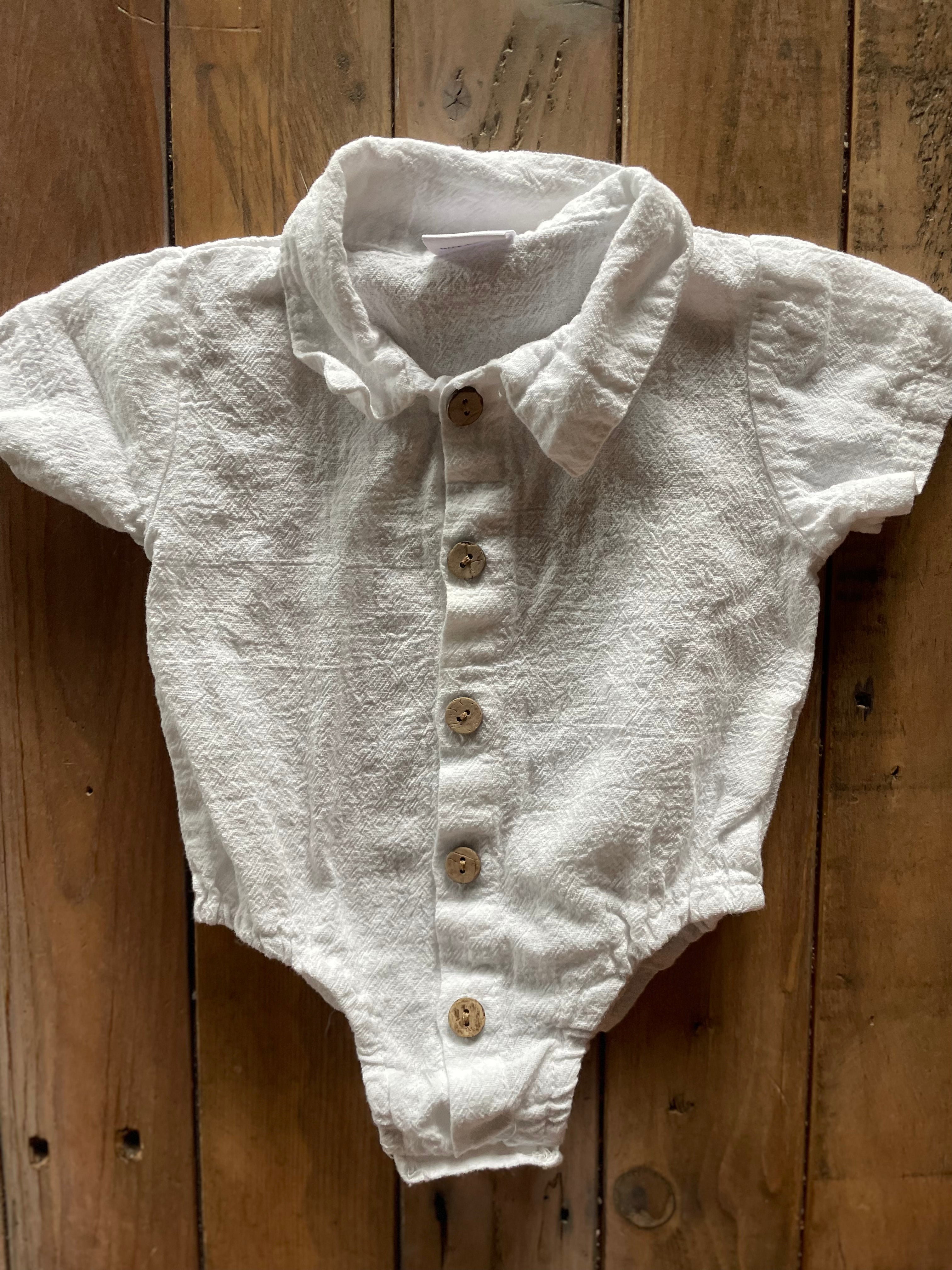 White Button Up Romper | 3-6 mo