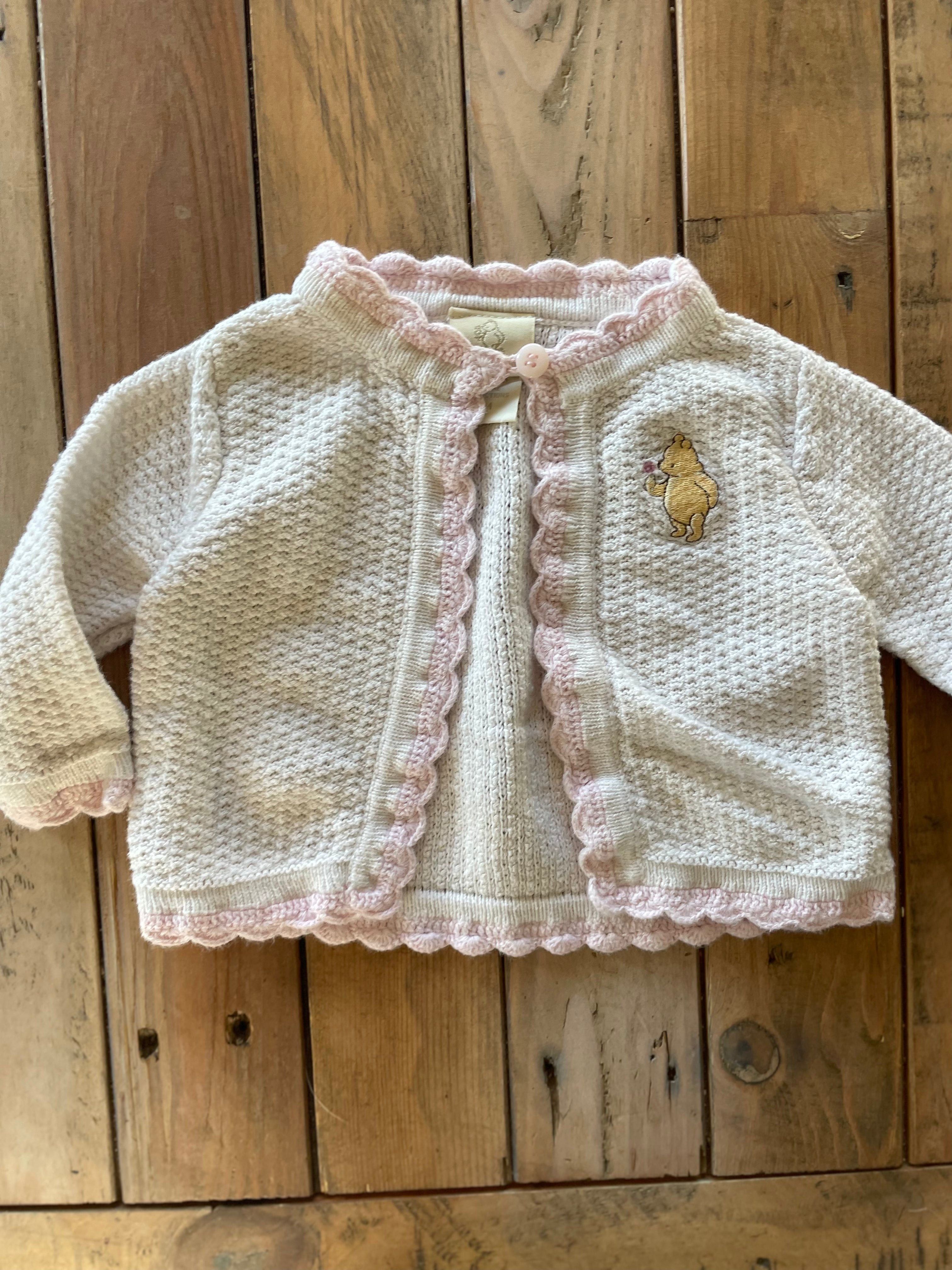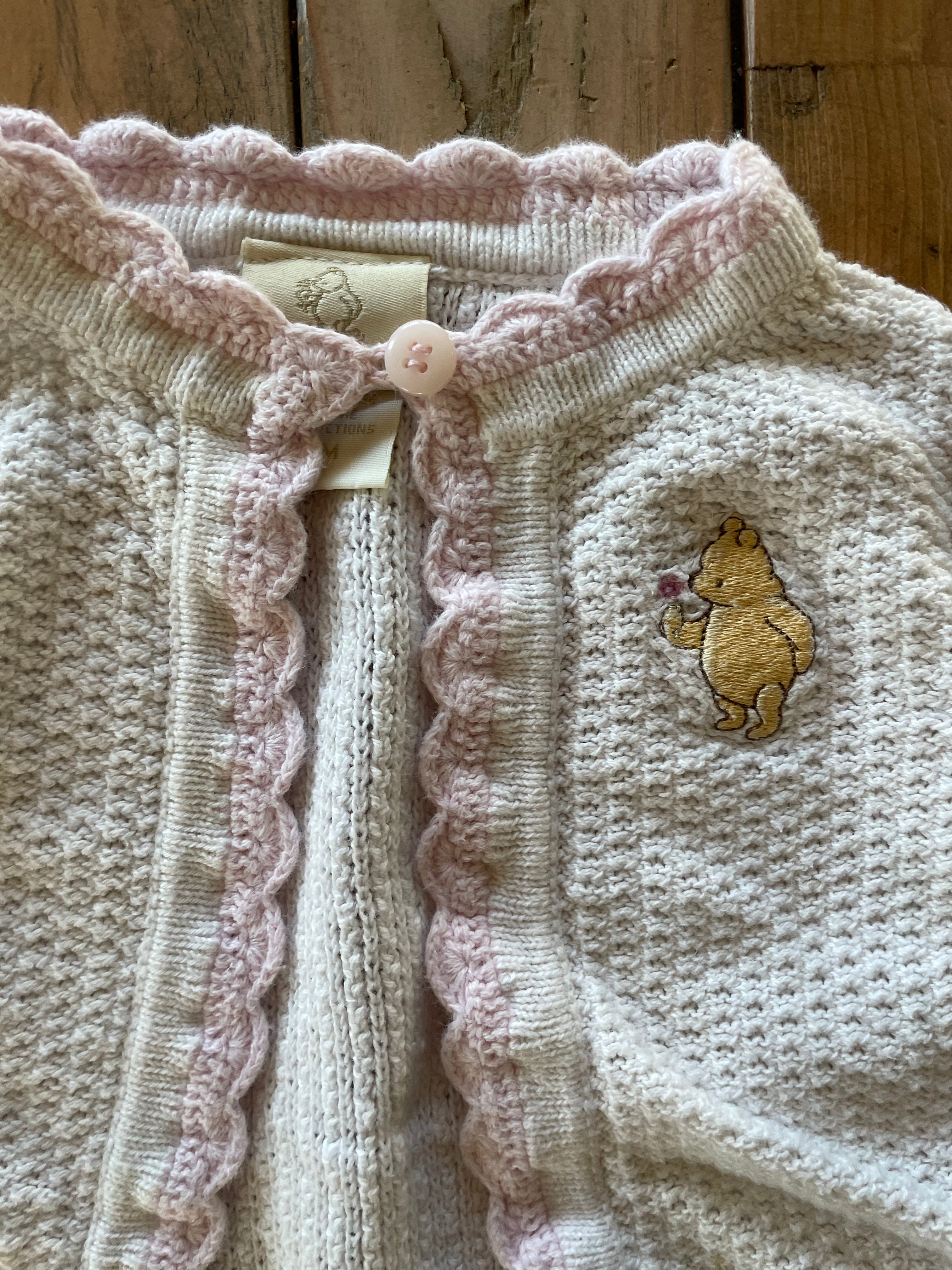 Vintage Pooh Bear Knitted Cardigan | 0-3 mo | Classic Pooh