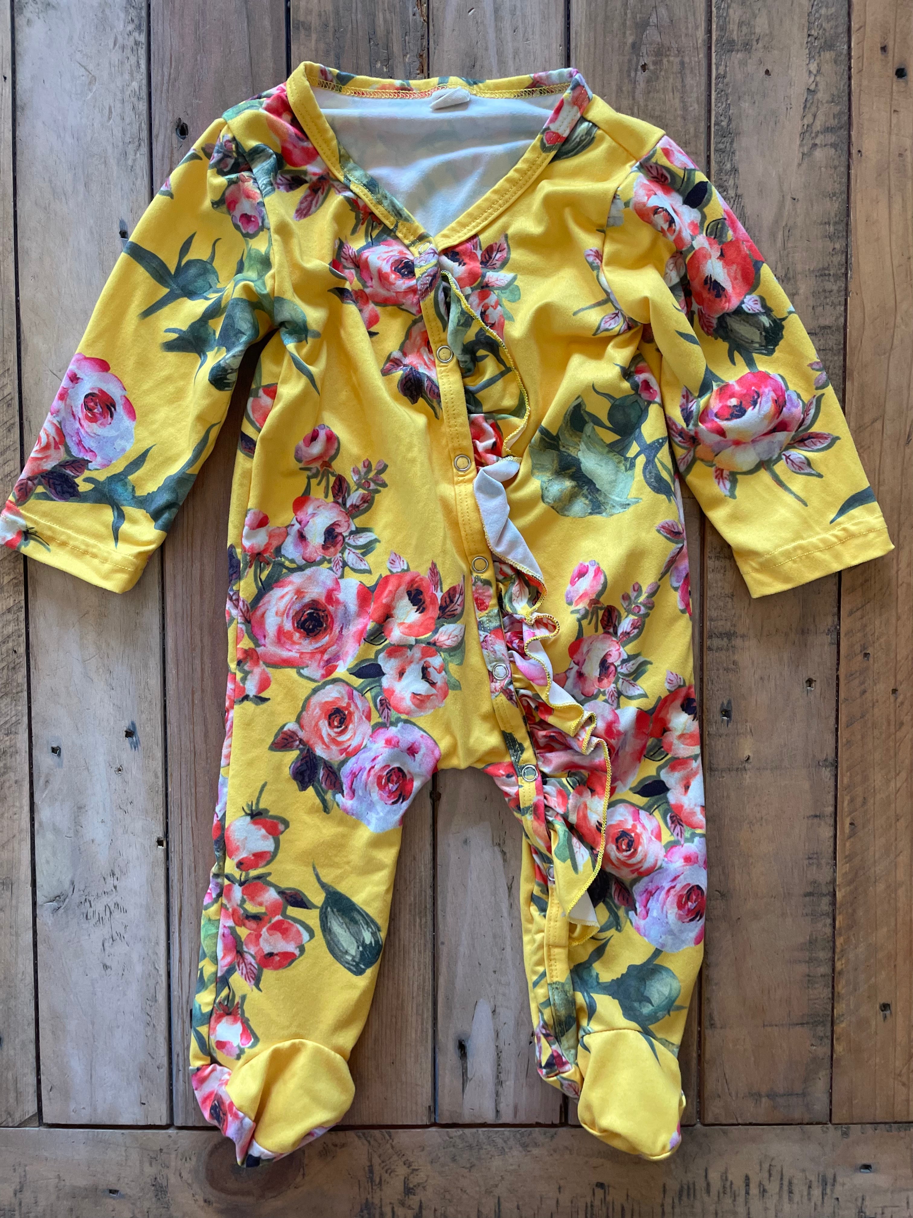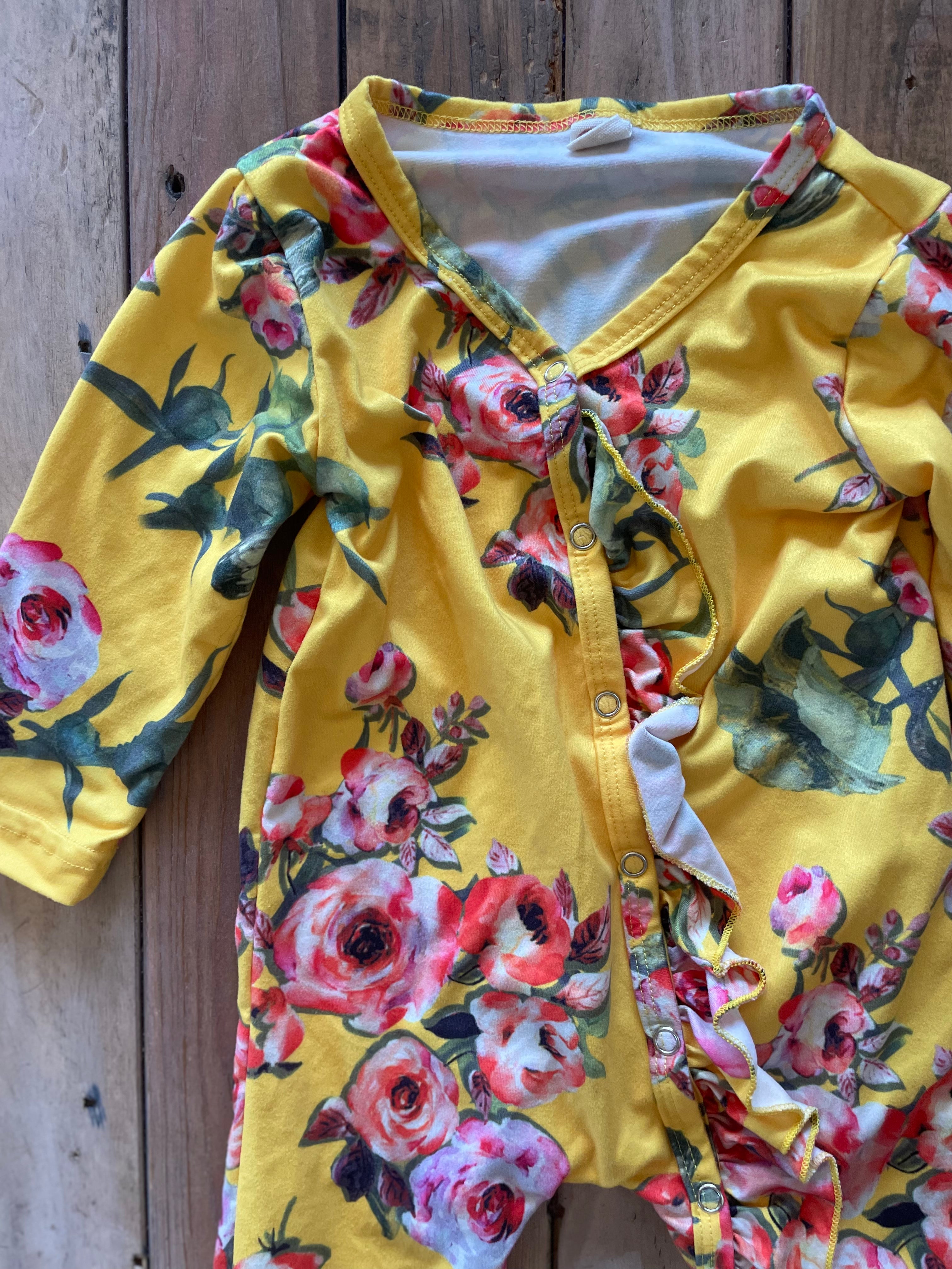 Yellow Flower Button Pajama | 6-9 mo